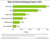 E-banking became an important part of everyday life and it covered the largest number of users in China. In 2012, number of online bank users ranked top occupying for 7.9% share of the e-bank users, followed by ATM and telephone bank with the share of 57.5% and 28.9% respectively. According to the iResearch analysis, popularity and application of online banking is the irreversible trend along with the rapid development of Internet. Last year most frequently used function of online banking and mobile banking was adding money to online shopping account and third-party account, according the report by iResearch.